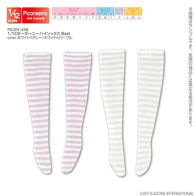 1/12 ボーダーニーハイソックス Bセット ホワイト×グレー/ホワイト×パープル