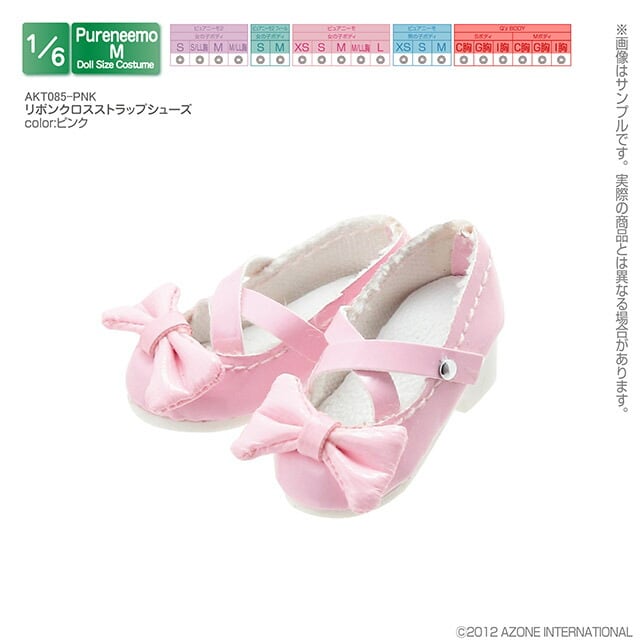 1/6用 リボンクロスストラップシューズ ピンク