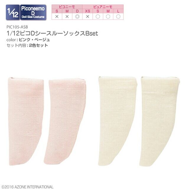 1/12 ピコD シースルーソックス Bset ピンク&ベージュ