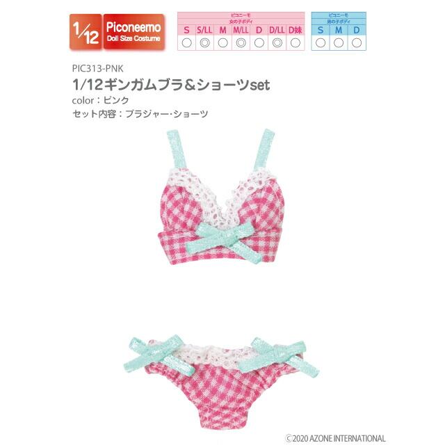 1/12 ギンガムブラ&ショーツセット ピンク
