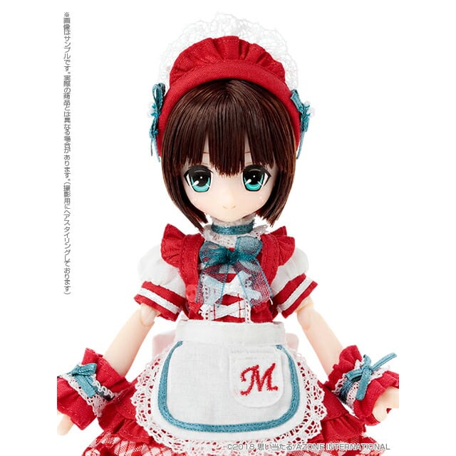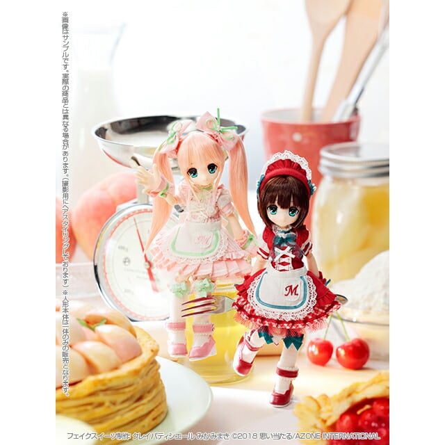 甘い香りに誘われて…</ br>現れた白い扉を開けると、そこは「スイーツ ア・ラ・モード」</ br>マヤたちがスイーツをイメージしたメイド風衣装であなたをおもてなし。</ br></ br>髪色:Baked pie(ベイクドパイ)</ br>瞳色:Leaf green(リーフグリーン)</ br></ br>セット内容</ br>ピコマヤドール本体・カチューシャ・チョーカー・ワンピース</ br>コルセット(肩紐付)・カフス・エプロン・パニエ・ガーターリング</ br>ショーツ・ソックス・シューズ・ハンドパーツ5種(本体装着分含む)</ br></ br>マスクデザイン:思い当たる</ br></ br>素体:ピコニーモDボディ 関節強化版 白肌</ br>ピコニーモボディ企画協力・原型制作(有)澤田工房