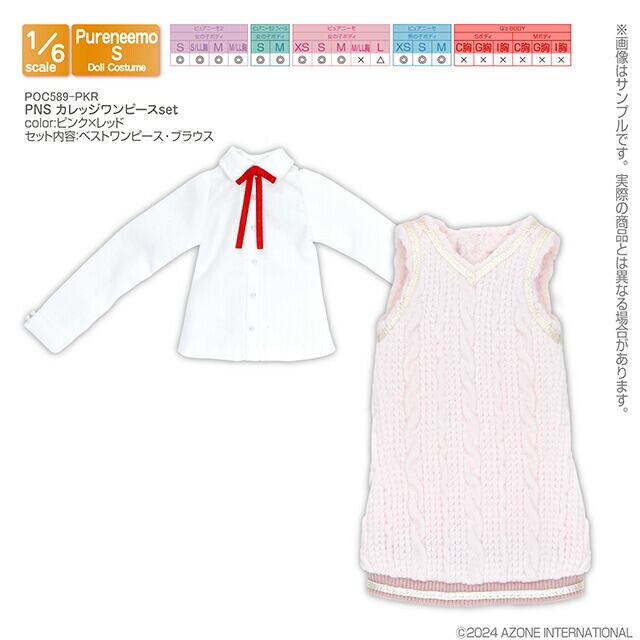 1/6用 PNS カレッジワンピースset ピンク×レッド
