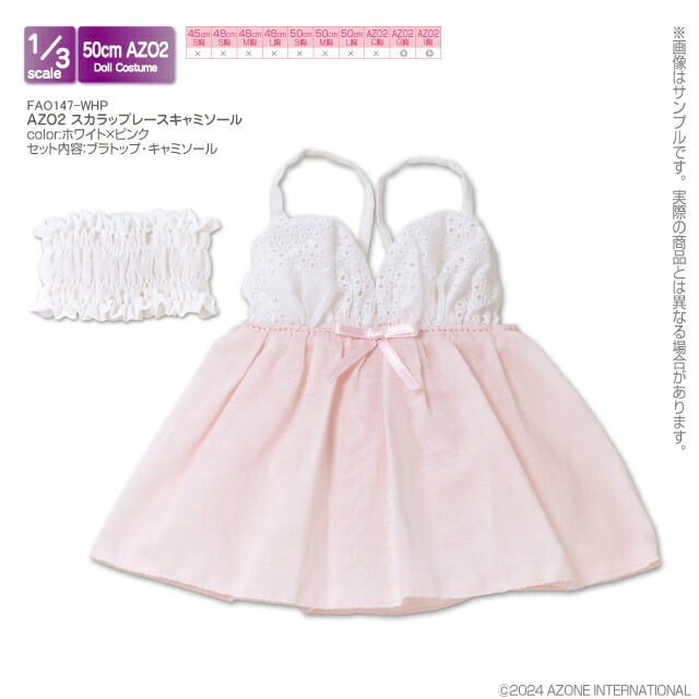 1/3 OB50 AZO2 スカラップレースキャミソール ホワイト×ピンク