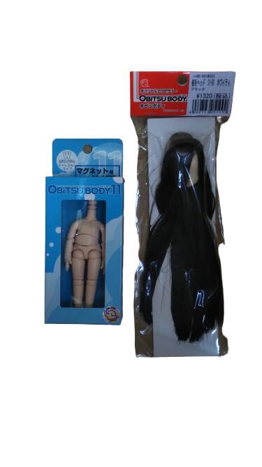 11cmボディ 自立用磁石付き 白肌 つや消し肌 ヘッドセット ブラック髪 OB11 | Doll-Collectible LGB店