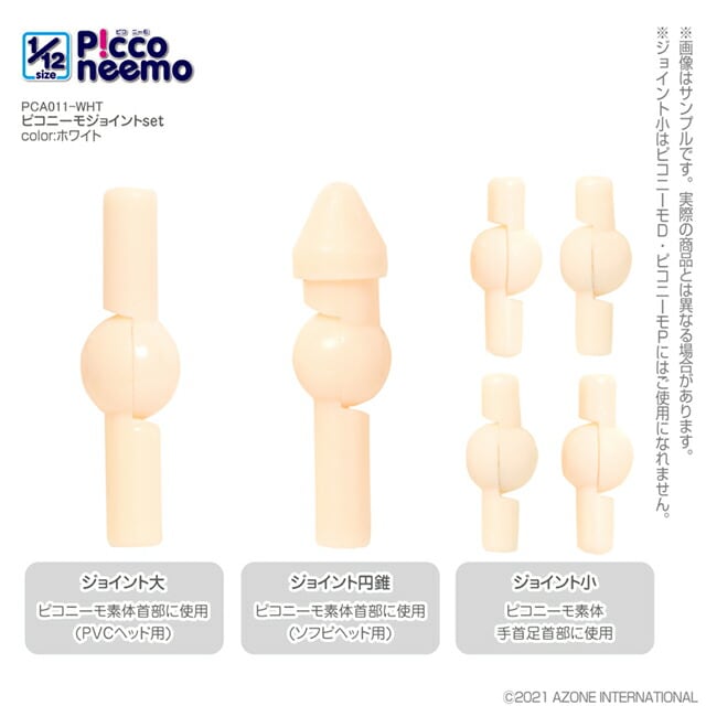 「ピコニーモ」ヘッド用の首接続パーツです。ピコニーモ系素体以外との適応については、ご自身で確認してください。誤って購入された場合でも返品はお受けしかねます。<br>なお、在庫の変動が激しいため、店頭ならびにメーカー在庫が欠品の場合はキャンセルをお願いする場合がございます。