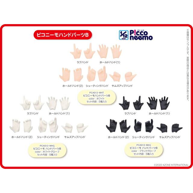 「ピコニーモD」素体用のハンドパーツです。適応できるか使用予定ボディの種類を必ず確認してください。誤って購入された場合でも返品はお受けしかねます。<br>なお、在庫の変動が激しいため、店頭ならびにメーカー在庫が欠品の場合はキャンセルをお願いする場合がございます。