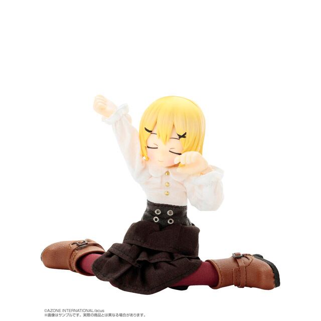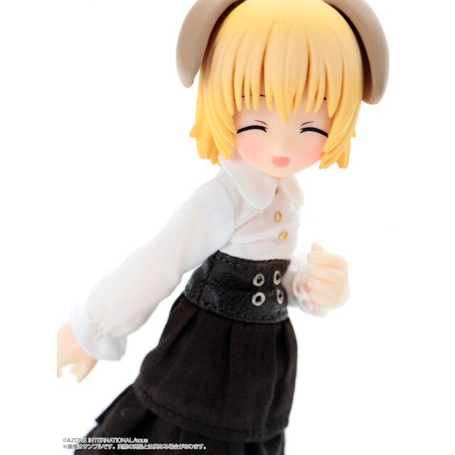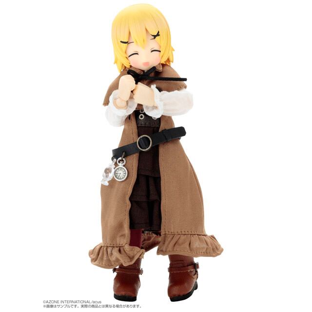 ワフルとミャムが探検服衣装で新登場!ワフルとミャムが衣装と髪色、付属の表情パーツ3種をリニューアルして新登場! 衣装はカラーリングを一新し、ベルト用のチャームやペンダントが時計をモチーフにしたものに変更。ワフルにはショルダーバッグ、ミャムにはリュックサックが付属。それぞれスナップボタンで開閉できる仕様になっています。●頭部:PVCヘッド(髪色:イエロー)●素体:ピコニーモDボディ関節強化版(特別版/白肌)●サイズ:1/12スケール(全高約15cm)※キャラクターデザイン、ヘッド原型製作:柊 葵(冬空ゴシック)※衣装デザイン、イラスト:茶円ちゃあ※ボディ原型製作:澤田工房●セット内容:ドール本体、ワフル探検服セット(ケープ・ベルト・ローブ・ワンピース・ブーツ・タイツ・ショーツ・ショルダーバッグ)、髪の毛パーツセット2種、表情パーツ4種、ハンドパーツ5種※本体分含む