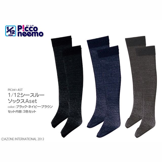 1/12 シースルーニーソックス Aset ブラック・ネイビー・ブラウン