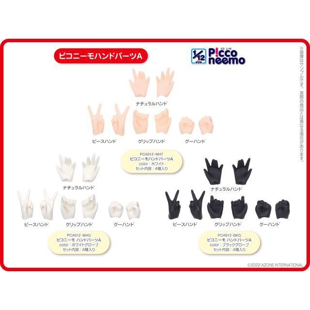 「ピコニーモ」素体用のハンドパーツです。適応できるか使用予定ボディの種類を必ず確認してください。誤って購入された場合でも返品はお受けしかねます。<br>なお、在庫の変動が激しいため、店頭ならびにメーカー在庫が欠品の場合はキャンセルをお願いする場合がございます。