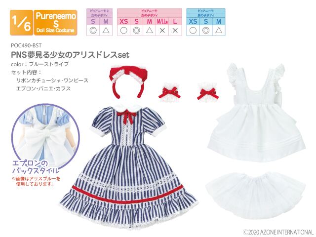 1/6用 PNS 夢見る少女のアリスドレスset ブルーストライプ