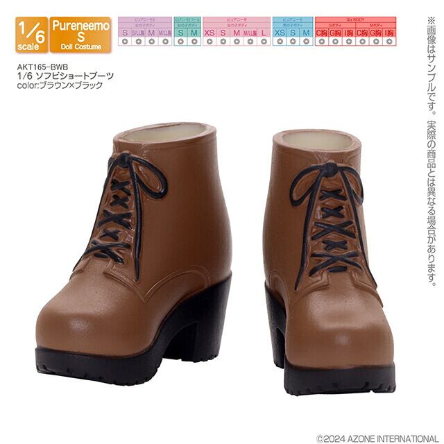 1/6用 ソフビショートブーツ ブラウン×ブラック