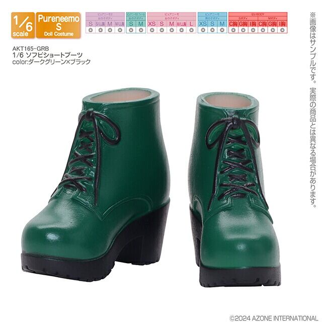 1/6用 ソフビショートブーツ ダークグリーン×ブラック