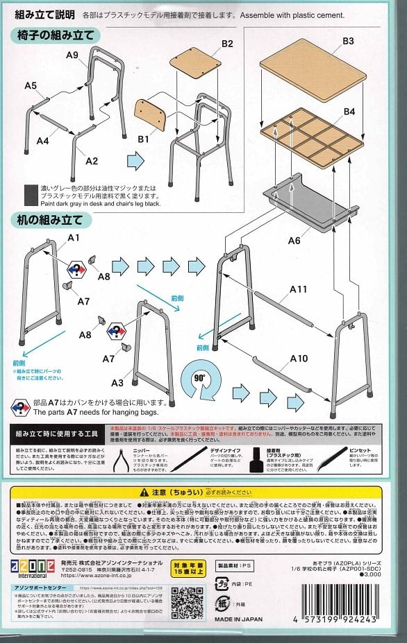 1/6スケールの学校什器。組み立て式です。ピュアニーモもリカちゃんたちも、みんな学校生活エンジョイ中。OB22〜27もOK。椅子と机以外は含まれません。